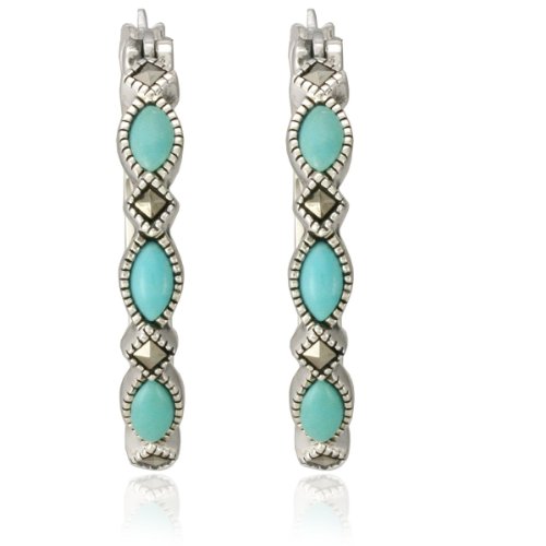 @@@ Product Details : Sterling Silver Marcasite and Lab Created Turquoise Hoop Earrings (0.8" Diameter)