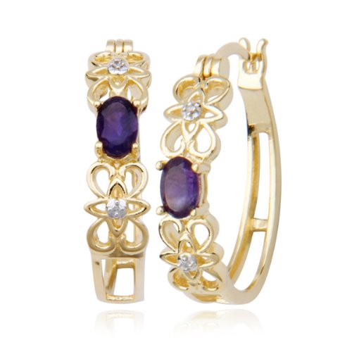 @@@ Product Details : 18k Gold Plated Sterling Silver Genuine Amethyst and Diamond Accent Hoop Earrings (0.9" Diameter)